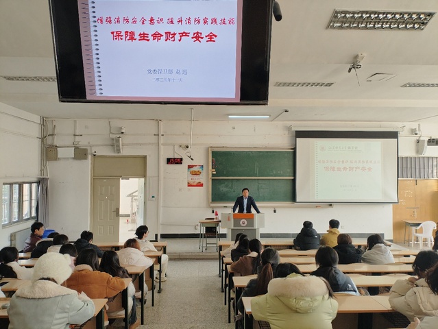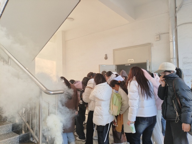 党委保卫部副部长张存钊深入分析了当前消防安全形势,并结合近期国内典型火灾案例进行剖析。他指出,全体师生必须时刻绷紧安全之弦,切实增强消防安全意识,熟练掌握基本消防技能。党委保卫部消防科负责人开展专题消防理论培训。课程紧扣高校实际,围绕教学楼、宿舍、实验室等重点场所的火灾风险,系统讲解了初起火灾扑救原则、疏散逃生技巧及常见消防设施功能,强化“预防为主、自救互救”的安全理念。理论培训结束后,现场模拟火警响起。在保卫部工作人员与学院教师的协同引导下,全体参训师生按照预定疏散路线,迅速、有序撤离至安全区域,高效完成应急疏散演练,切实检验了理论学习成效。